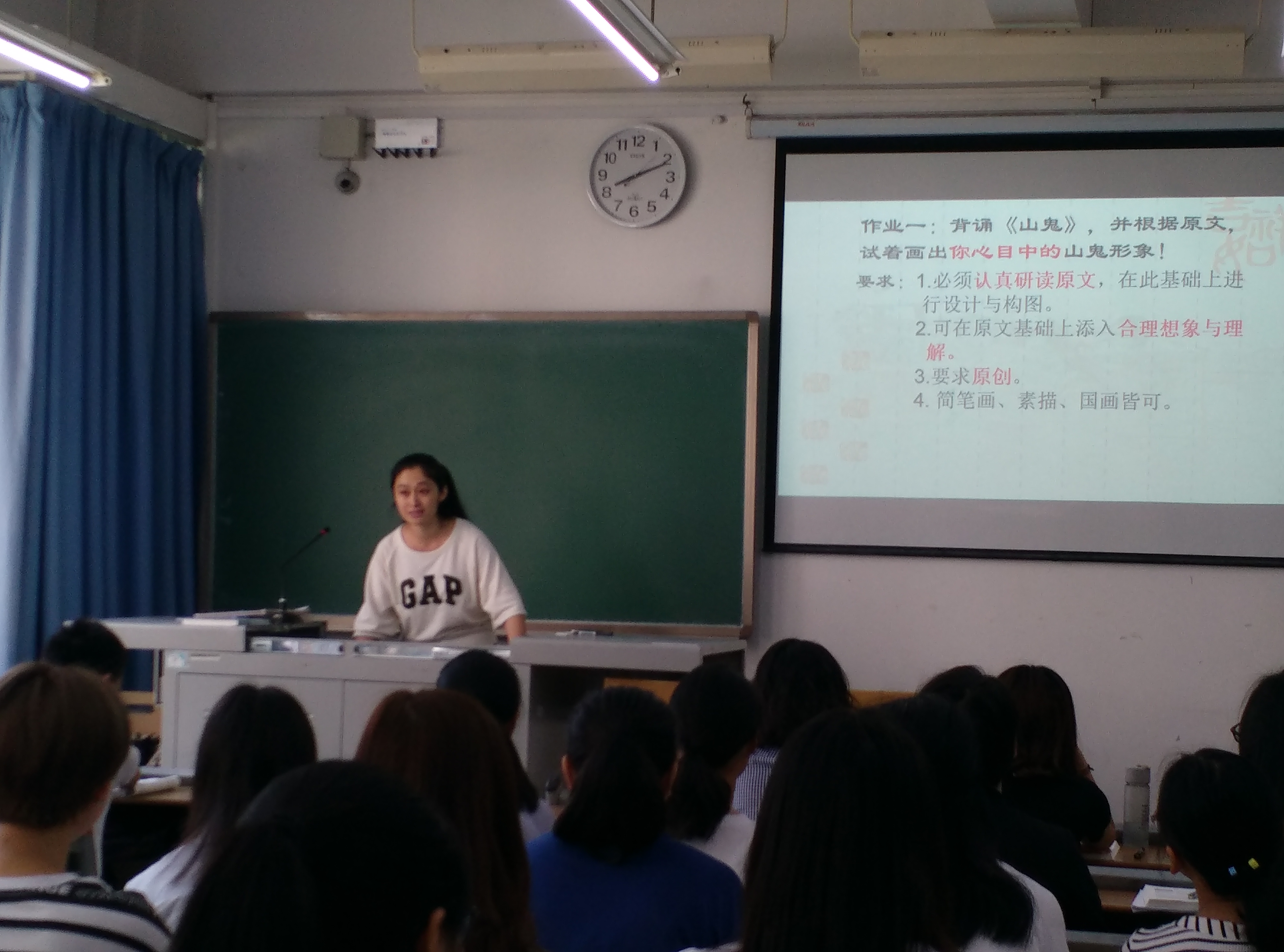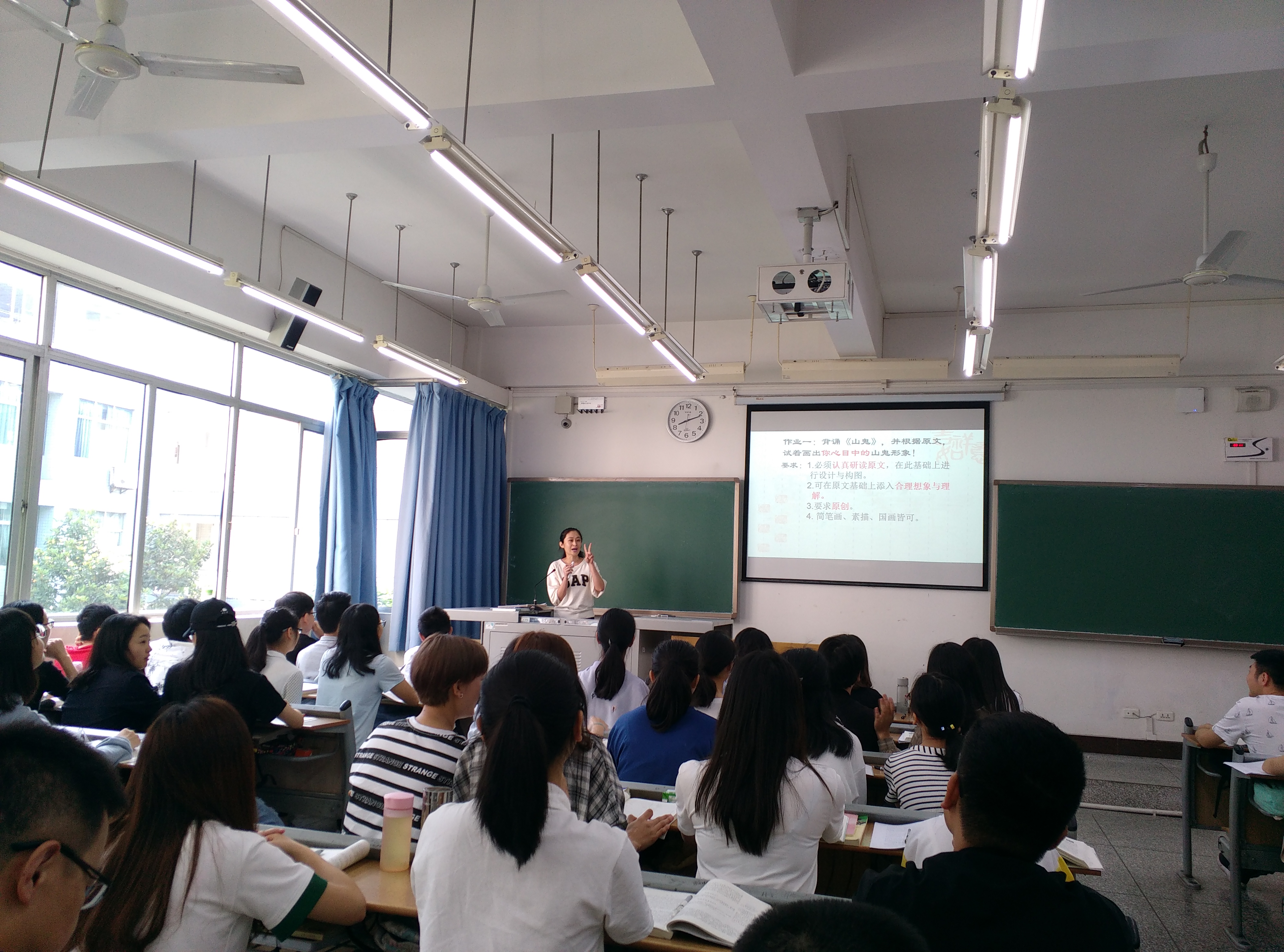 5月7日上午,公司中文系中国文学课程组李帅老师在知津楼B304为教育学院2017级全科教师4班员工进行了一堂《中国古代文学》教学公开课。本课程组教师杨忠谦、杨钊、刘学明、胡明清,以及李芹燕、王长武、吴立友等教师到场听课。