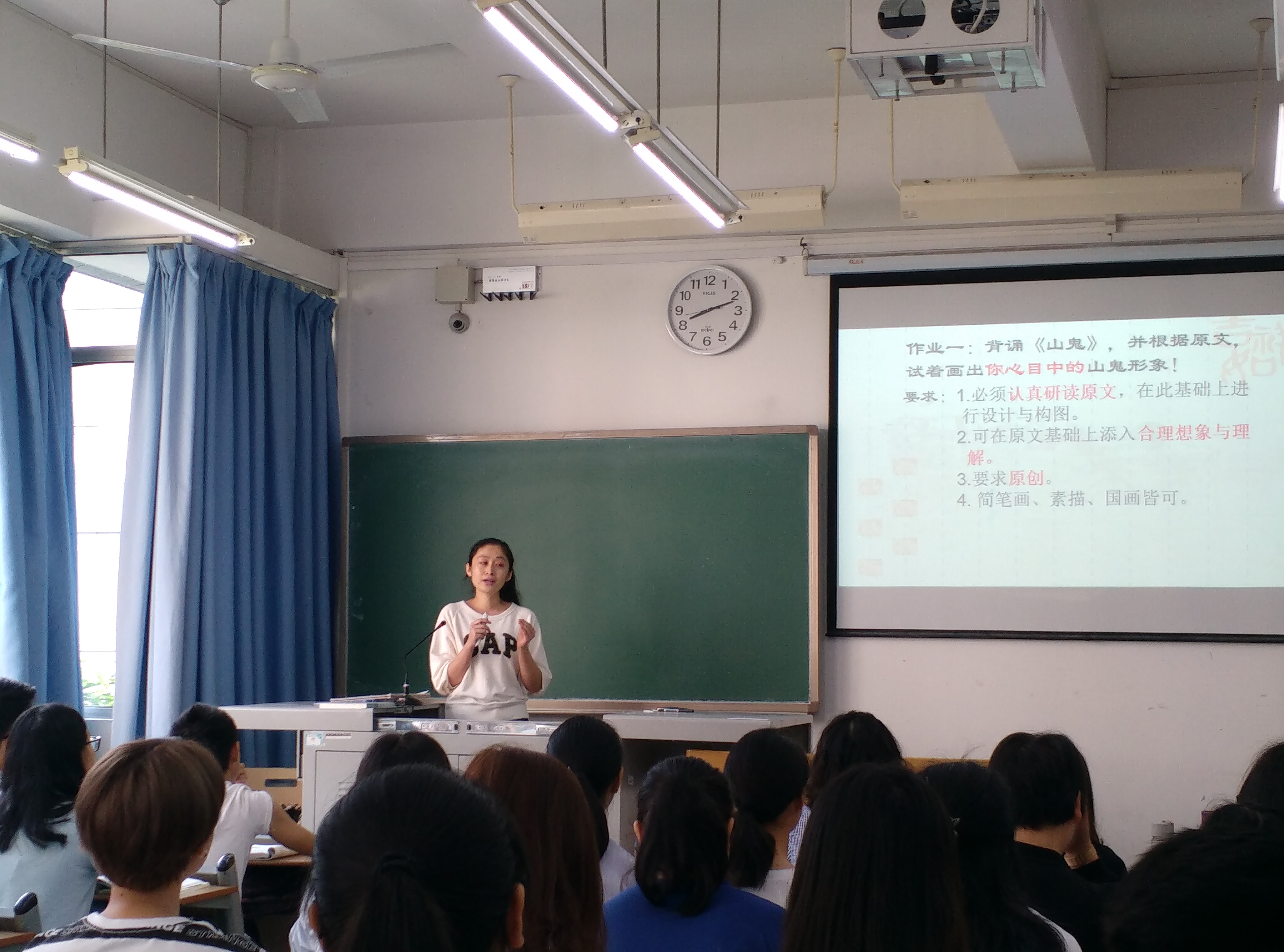 课上,李帅老师首先通过视频展示了员工根据屈原《山鬼》想象而设计绘制的图画作业,然后通过作业评点,自然导出包括“诗可以兴”、 “诗无达诂”等在文学鉴赏、文学批评中的一些文学理论,引导大家敢于有自己独立的思考,有“创造性的背离”。在讲解《琵琶行》一诗时,能够以白居易的生平经历,以及思想变化为背景,以唐代咏妓诗的发展变化为线索,分析这部作品的思想主题。最后李帅老师要求员工比较白居易与李白、李益相同题材的作品,借以提高员工对古代文学作品的分析研究能力。