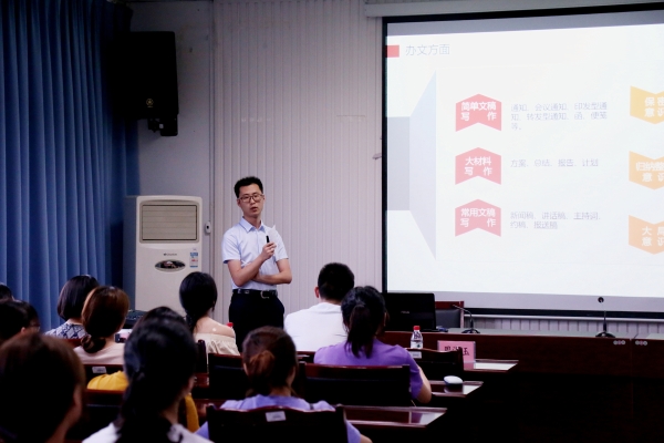 最后,文秘系教研室主任周杰老师对会议进行了总结,表达了对文秘专业员工的美好期许,提出要有学以致用、牢记责任与义务、踏实努力才不负青春的思想理念。