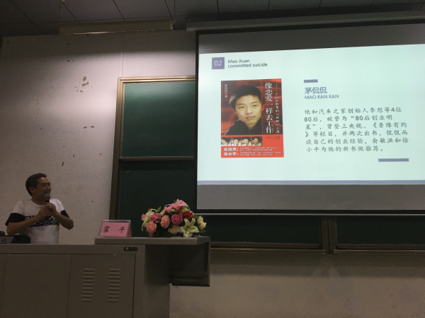 讲座伊始,白成良书记向师生们详细介绍了霍平师兄的就业创业历程,希望同学们认真聆听本次讲座、做到边听边思考、积极向师兄学习,争做向霍平师兄一样的优秀创客。