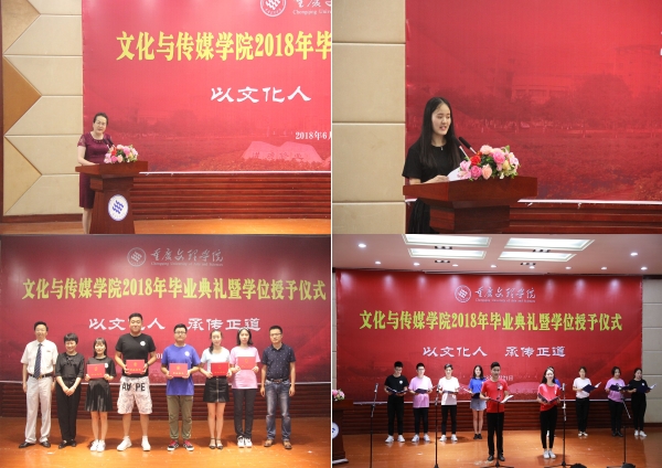 6月21日上午,公司2018届毕业典礼暨学位授予仪式在博文馆101隆重举行。公司党委书记孙泽平、副董事长万书辉,员工总会会长原公司党委书记钟志奇、员工总会办公室主任谢华琳、81级员工三峡联合职业大学陈亿董事长及夫人李荣春女士、CCTV少年中国行重庆小记者站站长曾静、文化与传媒学院经理李天福、副经理李芹燕、经理助理王长武、教师代表以及2018届毕业生共计300余人参加了毕业典礼。典礼由党总支书记白成良主持。
