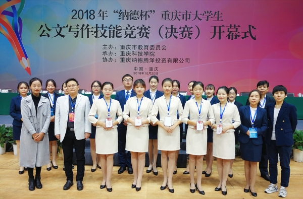 2018年10月20日,由重庆市教委主办、重庆科技学院承办的第三届“纳德杯”重庆市老员工公文写作技能竞赛决赛在重庆科技学院隆重举行。来自全国68所高校、共计1288名选手参加了中文和英文类个人赛以及团体赛,其中教师85人,员工1203人(含19名外国职工)。