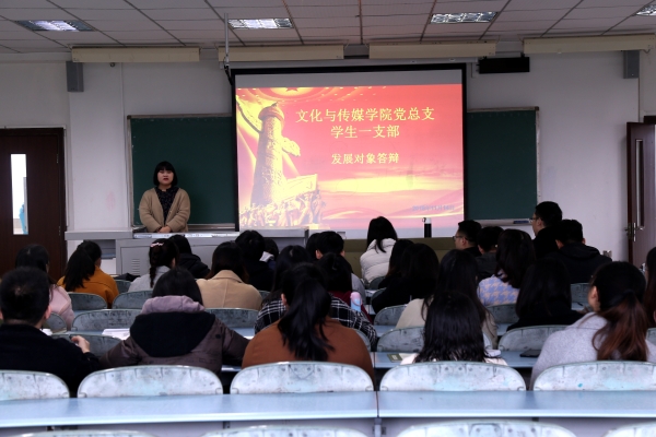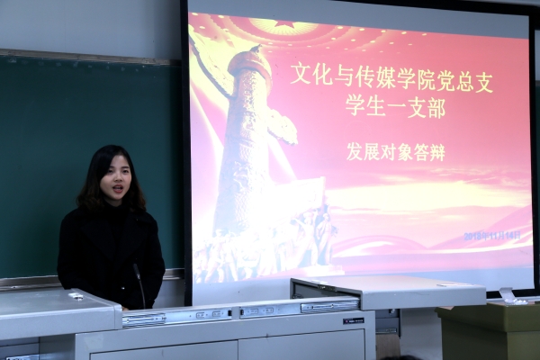 2018年11月13日晚7点,文化与传媒公司党总支员工一支部2018年下半年发展对象答辩在知津楼D405顺利召开,文化与传媒公司党总支员工一支部全体党员、预备党员和发展对象参加了此次答辩,本次答辩由范霞主持。