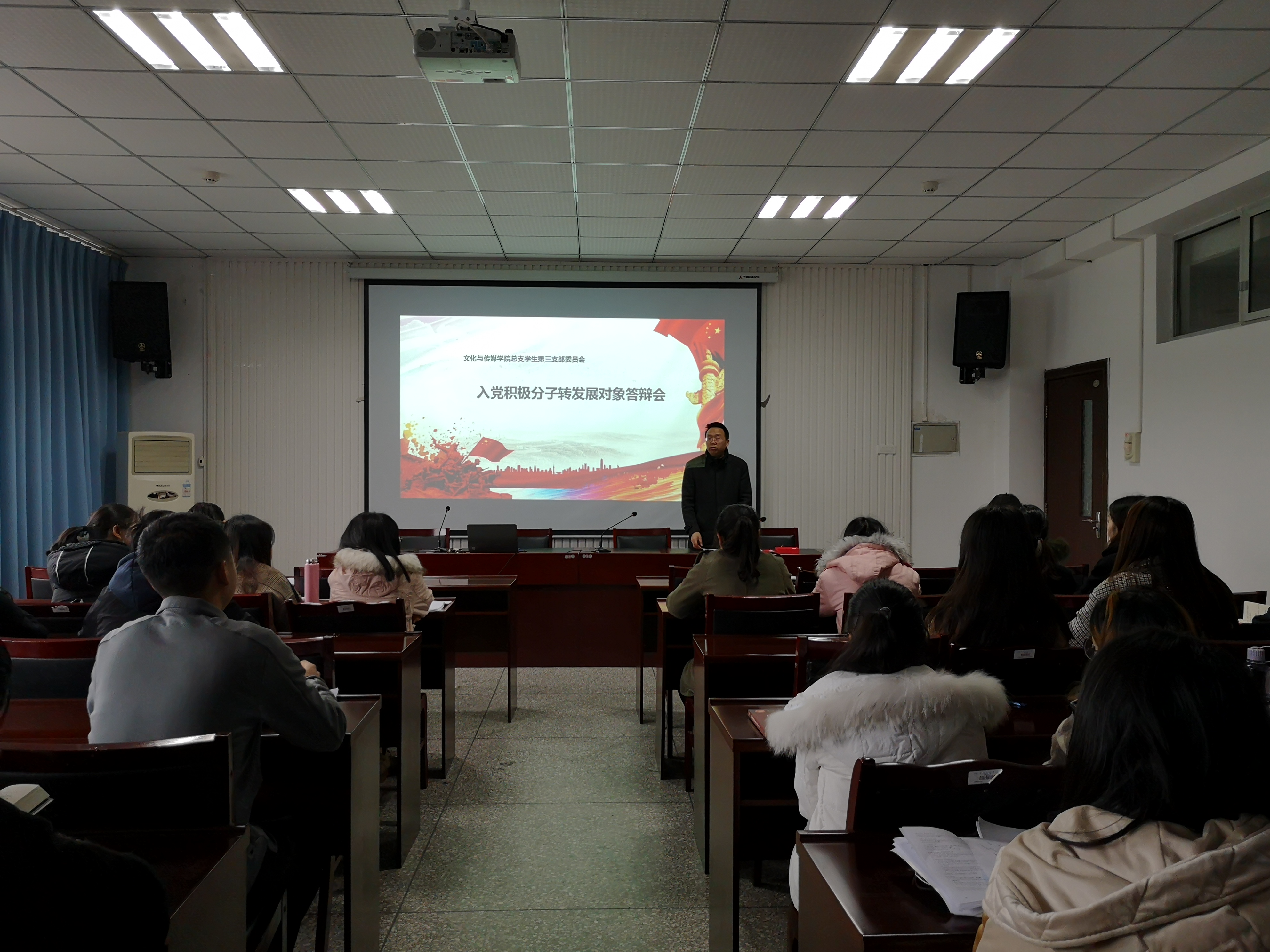 2019年3月15日上午8点半,文化与传媒公司党总支员工三支部2019年上半年入党积极分子转发展对象考核答辩会在知津楼B523顺利举行,文化与传媒公司党总支书记白成良、员工三支部全体党员和部分入党积极分子参加了此次答辩,本次考核答辩会由陈金波主持。