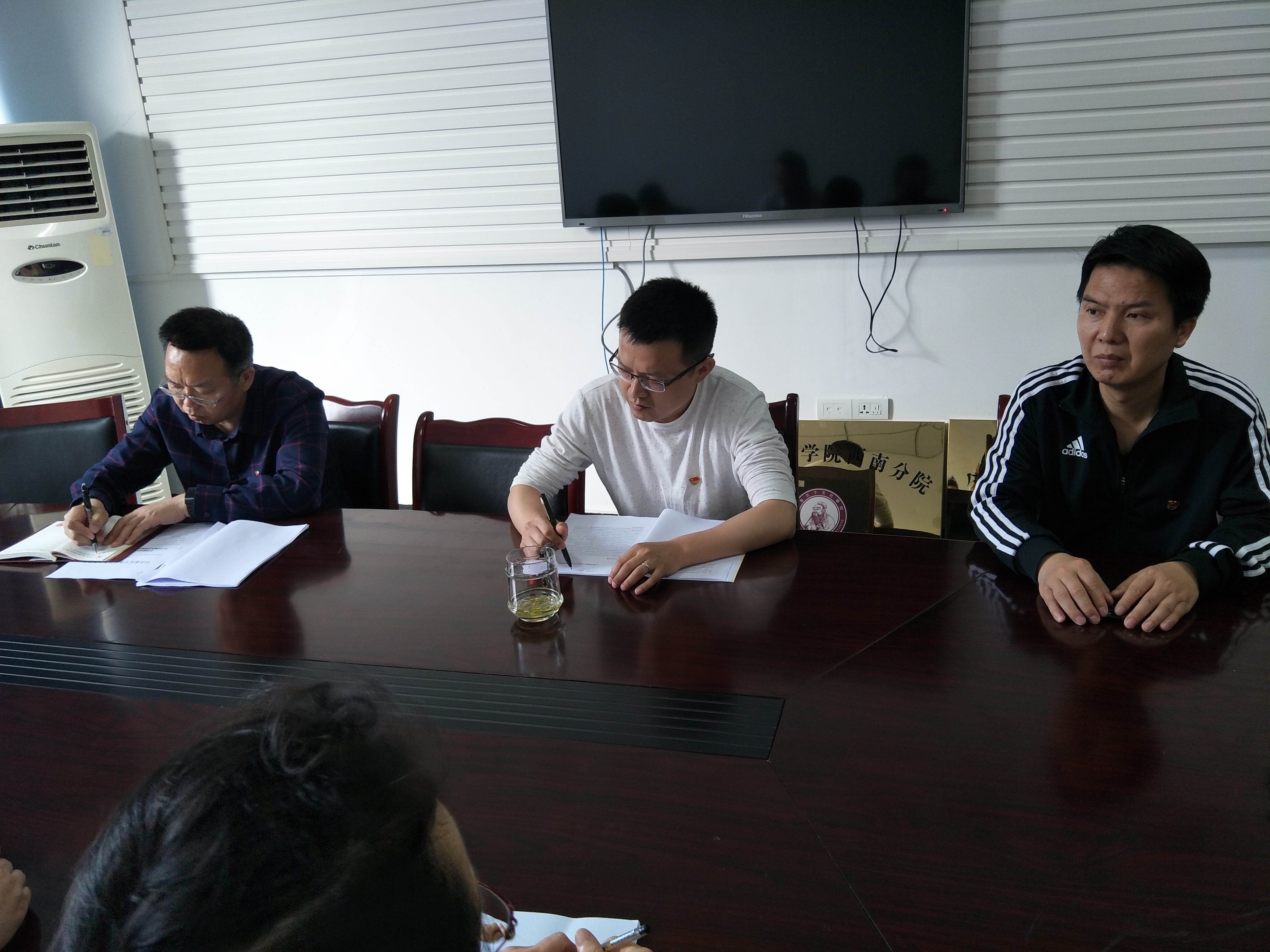 4月24日下午,教工一支部党员在知津楼B512开展了本月“不忘初心,牢记使命”专题主题党日活动。活动由支部书记吴立友主持。吴立友首先以习近平新时代中国特色社会主义思想为题为党员们讲授党课,指出八个明确、十四个坚持,是习近平新时代中国特色社会主义思想的具体展开和内涵逻辑,从世界观和方法论的高度,系统全面地回答了中国特色社会主义进入新时代后,中国共产党的‘新目标’‘新使命’,面临的‘新矛盾’等一系列带有根本性的问题,与治党治国治军的各方面工作紧密相连,既有理论高度,更具实践价值,将指导我们更好坚持和发展中国特色社会主义。