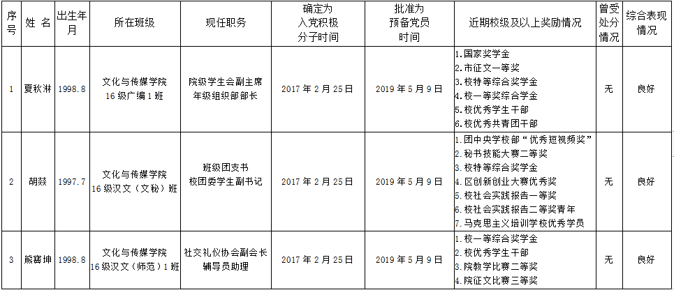 经本人申请,支委会研究。拟于近期召开支部大会讨论我支部夏秋淋等3名同志预备党员期满转正事宜。根据发展党员程序要求,现予以公示。