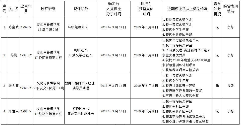 经本人申请,支委会研究。于5月8日下午召开支部大会讨论我支部陈金波等4名同志发展对象转预备党员事宜。根据发展党员程序要求,现予以公示。
