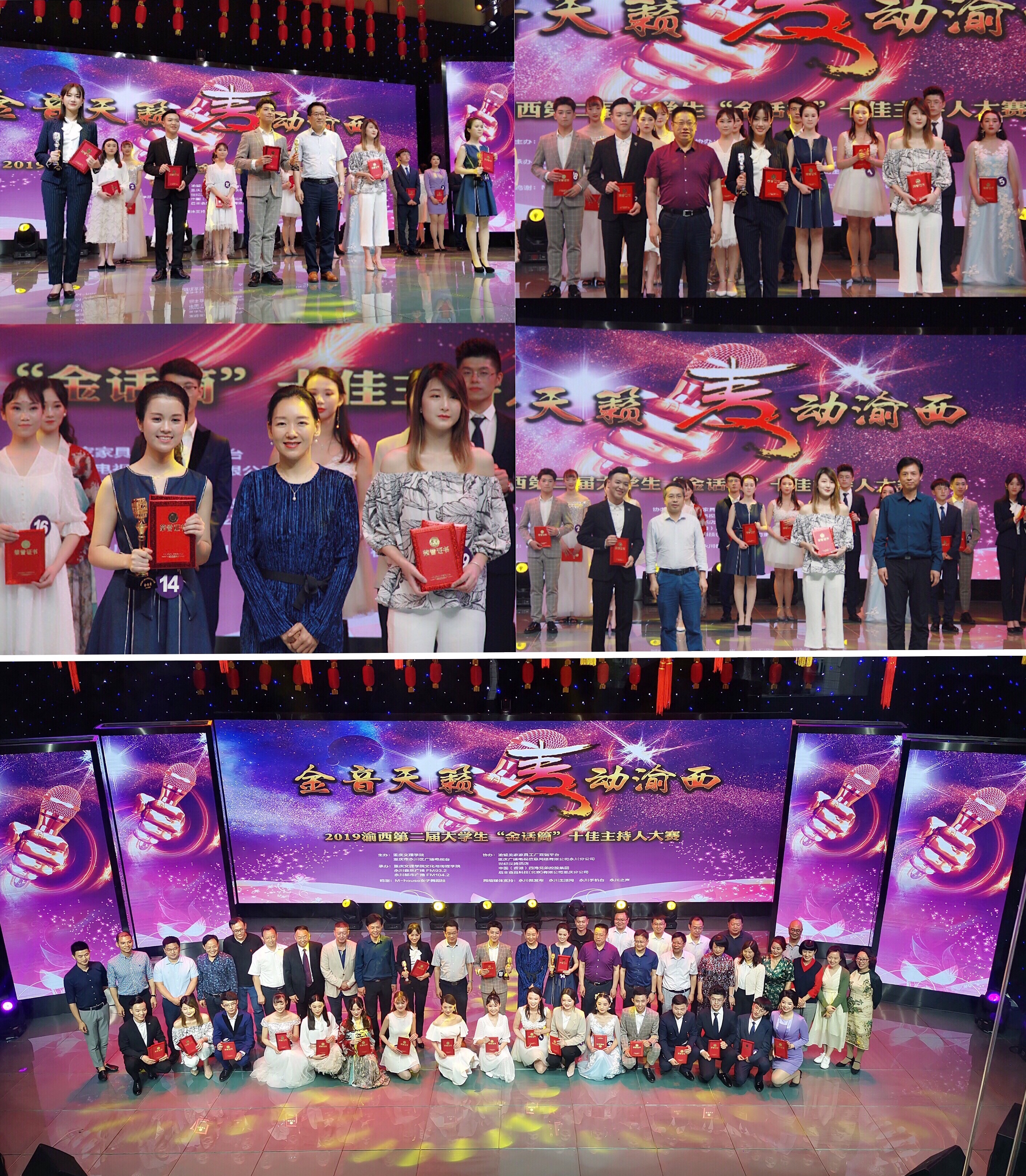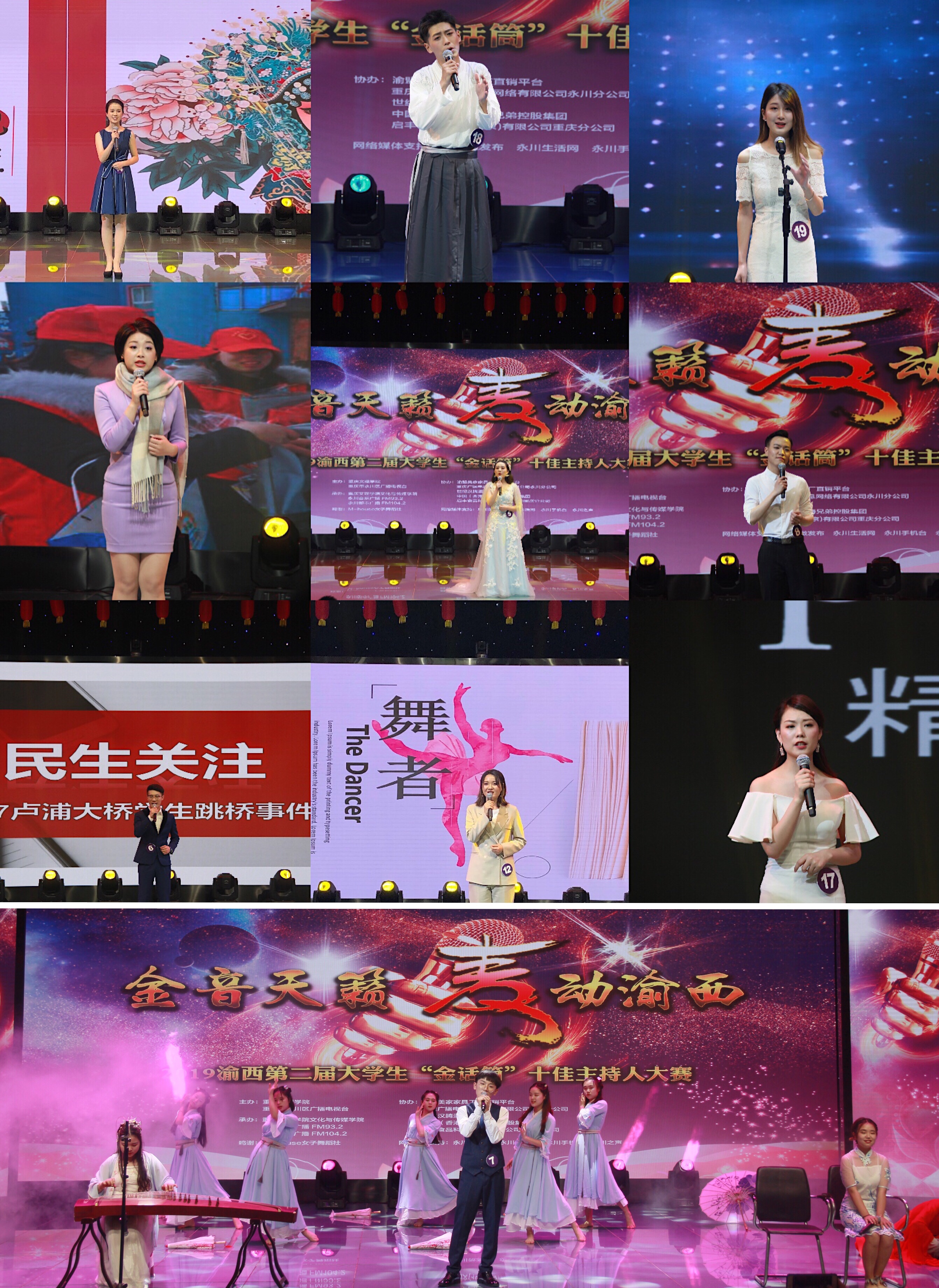 比赛现场进行全球直播,共分为风采展示、个性主持、才艺展示和话题评述四个环节。风采展示,来自渝西片区高校的20名选手依次在聚光灯下展现自我;个性主持,话题涵盖民生服务、文化、新闻评论等多个方面;才艺展示,选手多才多艺惊艳全场;话题评述,三位晋级选手展开了一场别开生面的即兴主持。经过四轮对决,重庆人文科技学院杨阳,公司易芳、公司教育学院王虹懿分别获得“铂金话筒”、“金话筒”、“银话筒”称号;公司谭寅卓、刘璐,重庆人文科技学院方梦玲等同学获得“十佳主持人”称号;重庆交通大学张婧、重庆大学城市科技学院周彦宏、重庆师范大学涉外商贸学院邓世渝、重庆水利电力职业技术学院于忠秋、重庆城市职业学院唐一航、重庆传媒职业学院熊显兰等同学获得“优秀主持人”称号;重庆财经学院罗喜月获得“最佳上镜奖”;重庆工程学院潘春全获得“最佳人气奖”。