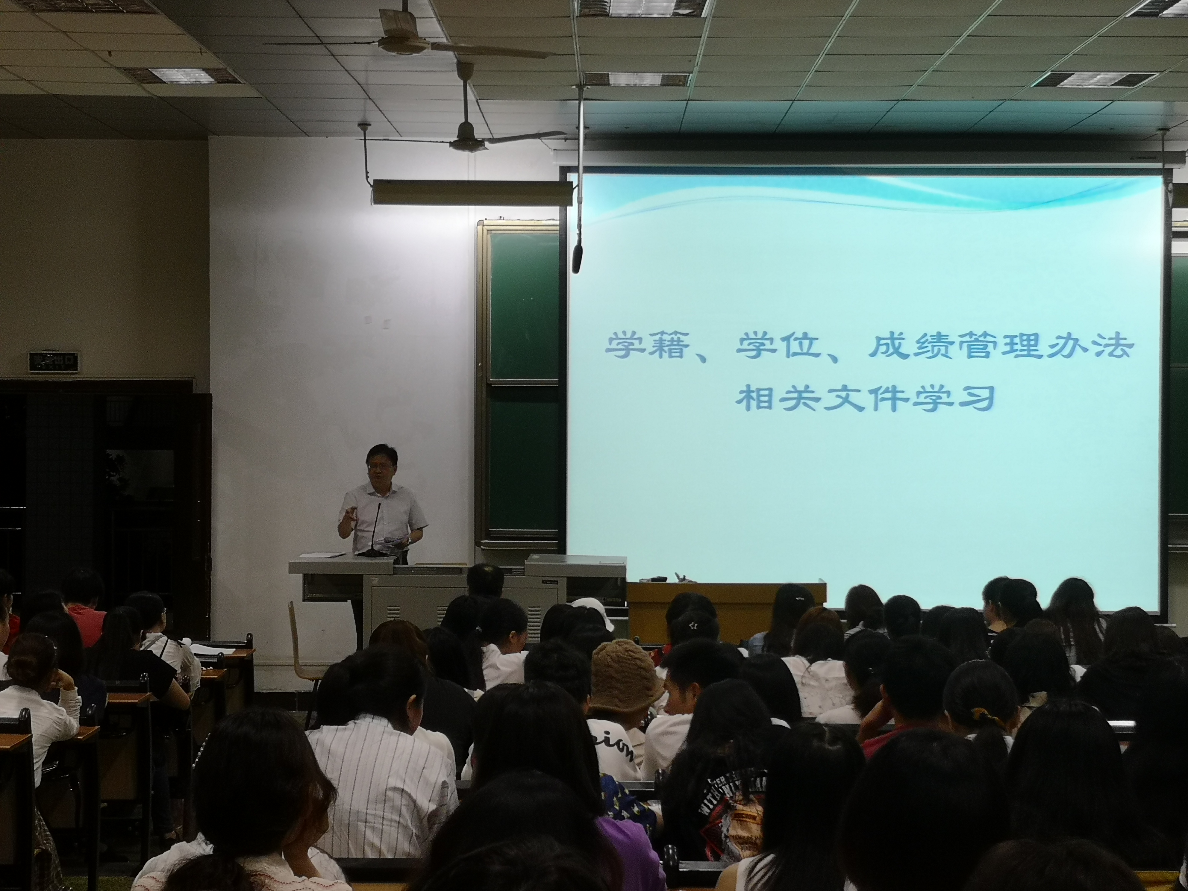 6月23日晚,文化与传媒学院领导班子为学院全体同学分三个批次开展以学籍、学位、成绩管理文件学习会。会议由党总支书记白成良主持,经理李天福主讲。