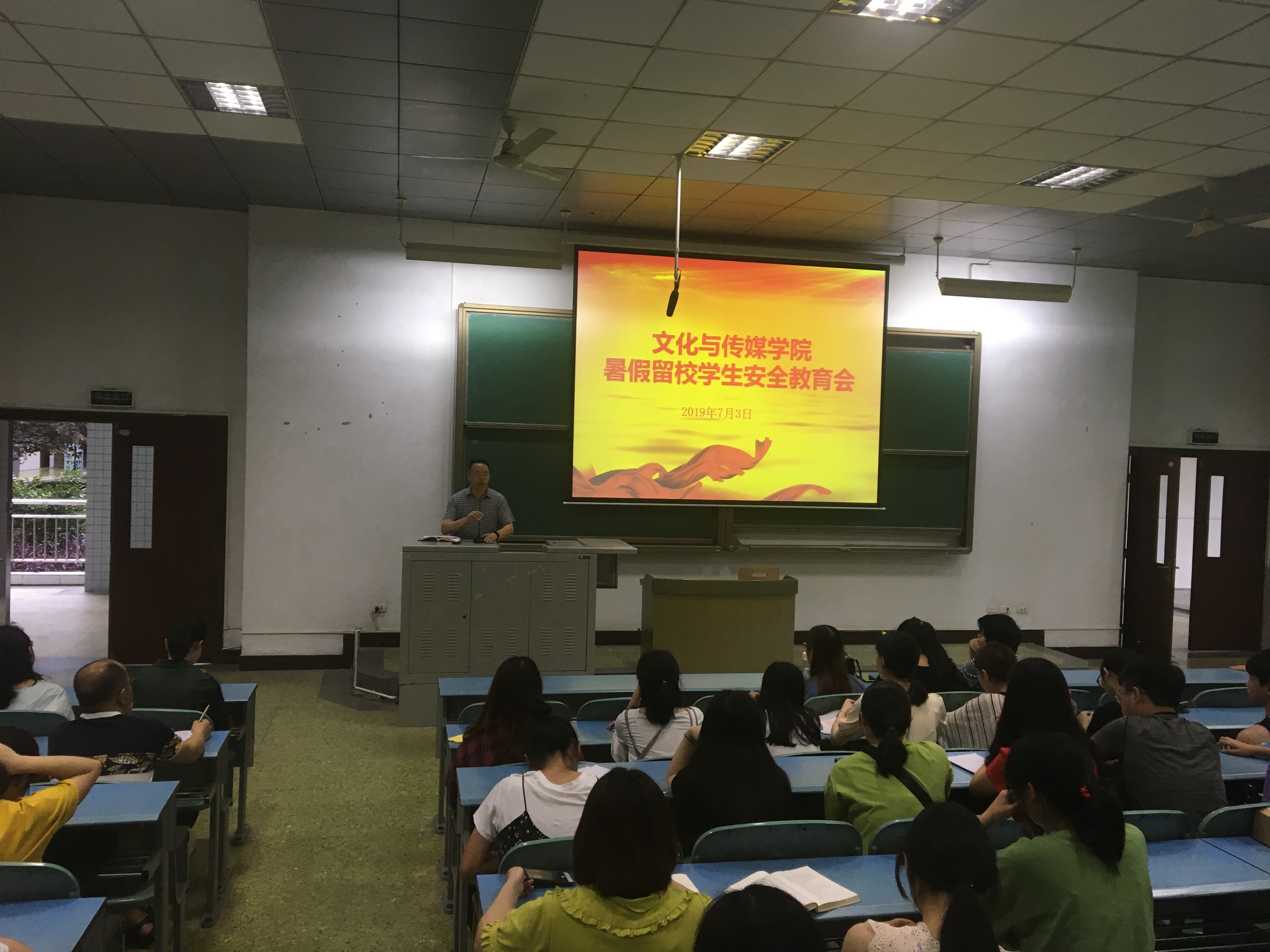 为进一步增强公司暑假留校员工的安全意识,确保员工暑期安全和校园稳定,7月4日,公司在知津楼一阶教室对留校员工进行暑假安全教育。公司党总支书记白成良、16级辅导员牟芷、李帅,17级辅导员张梓涵、18级辅导员余建荣及全体暑假留校员工参加了本次会议。学工办主任刘友洪主持会议。