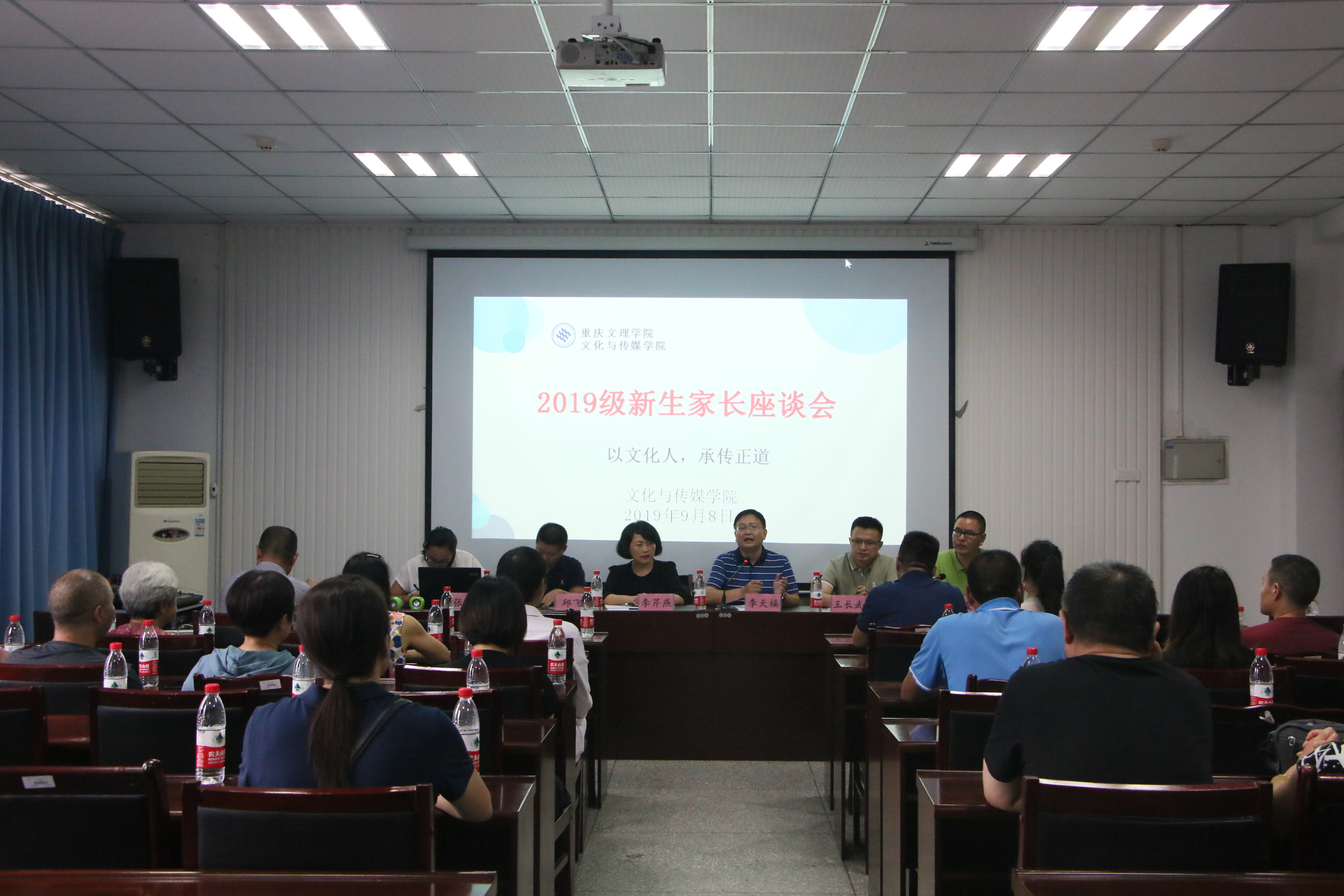 为加强家校联系,搭建家校联系平台,9月8日下午,公司于知津楼B523举行2019级新生家长座谈会。公司党总支书记、经理李天福、副经理李芹燕、党总支副书记邱飞、经理助理王长武、19级辅导员张雪以及30余名新生家长参加本次会议。会议由学工办主任刘友洪主持。