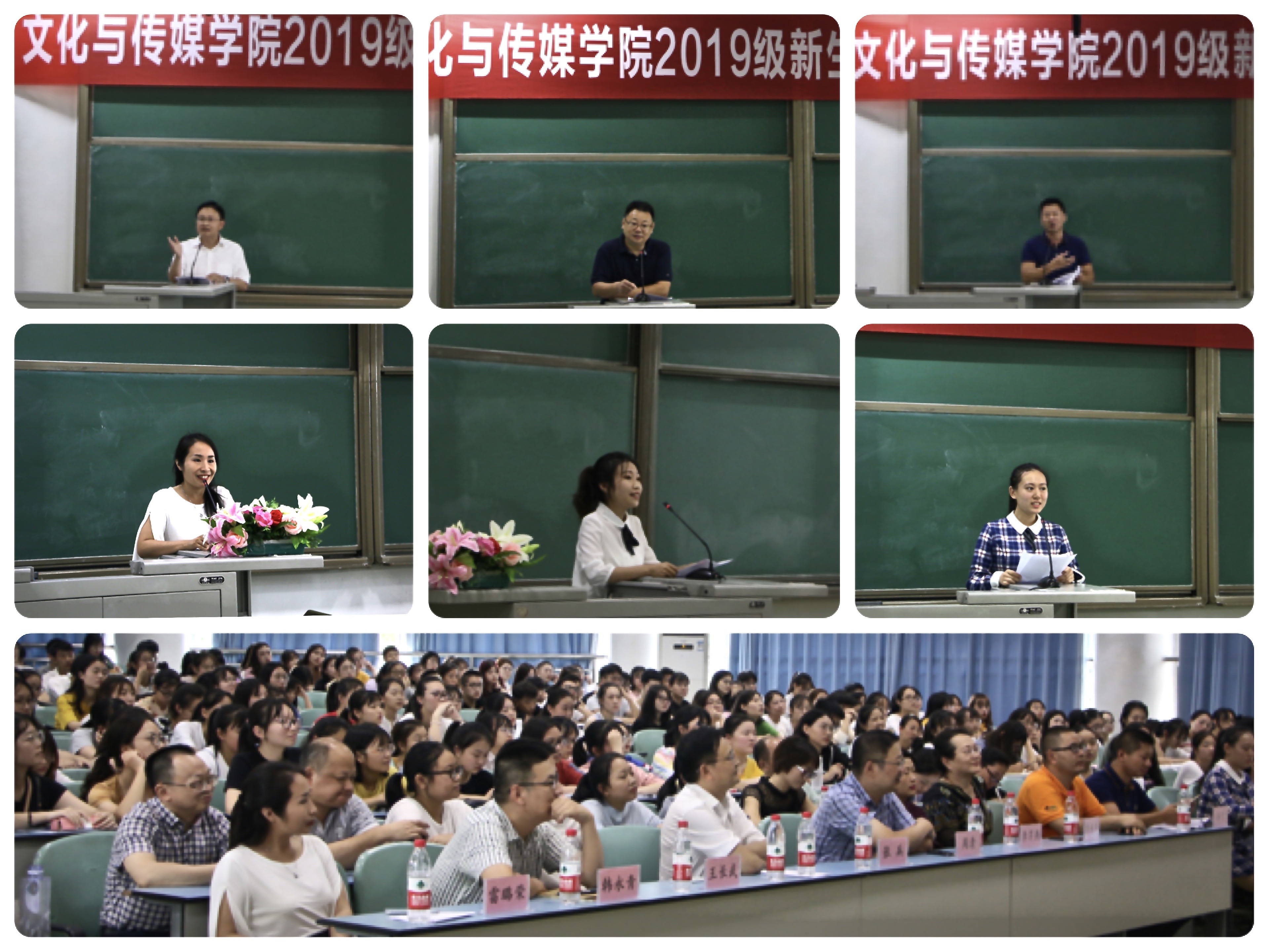在庄严的国歌声中,开学典礼拉开了帷幕。随后雷璐荣作为教师代表发言,她风趣轻松地讲述了老员工需承担的责任、需付出的勤奋、需学会的自强自尊,并寄语新生愿他们都能为自己的未来谋一席之地;张兵学长作为员工代表从自身实际经历出发,用诙谐幽默的语言分享写作魅力与坚持不懈的奋斗精神,告诫新生们要有确切的自我认知,用努力去获得未来的辉煌成功;吴越作为高年级员工代表为新生送上来自学姐的欢迎和祝福,并结合经验建议新生要明确定位,制定目标,学会选择,用努力去寻找自己的闪光点;陈怡璇作为新生代表发言,她表达了对学院关怀的感谢和自己能在未来实践中得到蜕变的美好期愿,并号召新生在这浮躁时代仍要保持作为青年的真心与正心。