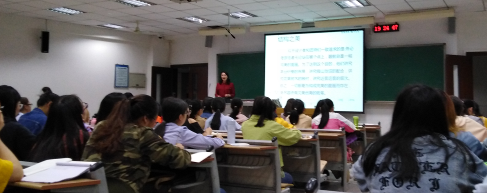 第一堂课,李文洪老师详细讲授说明文的基本知识,同学们完整地构建了说明文的知识体系。第二堂课,李文洪老师首先以《苏州园林》为例细腻的进行文本解读,让同学们明白了分析说明文的方法。接着,李文洪老师有条理的将四大核心素养贯穿在说明文的课堂教学环节中,让同学们体会到核心素养在中学语文教学中的重要性。最后,在李文洪老师的引导下,同学们以《中国石拱桥》一文进行教学实践,包括教材分析、教学目标、教学重点和难点、教学方法和教学具体过程等每个环节,同学们都积极认真探究,特别是如何将四大核心素养渗透在这一课的教学中,至此,同学们的学习积极性达到高潮。