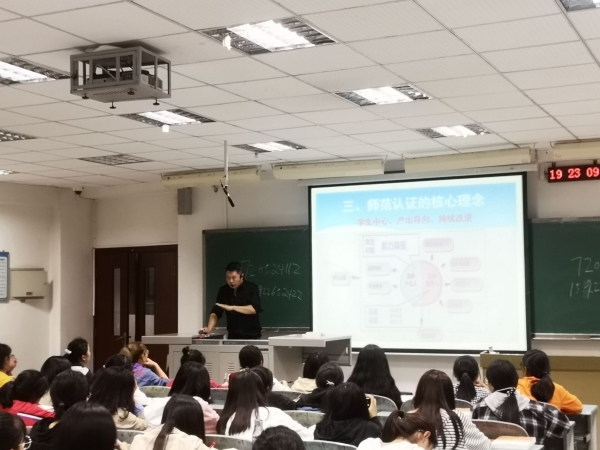 2019年10月10日晚7点,文化与传媒学院中文系主任黄贤忠博士在知津楼D404为2019级汉文师范专业员工举办一场旨在解读师范认证理念和2019人才培养方案的专题讲座。2019级汉语言文学师范专业的全体新生参与了这次学师范认证理论学习。