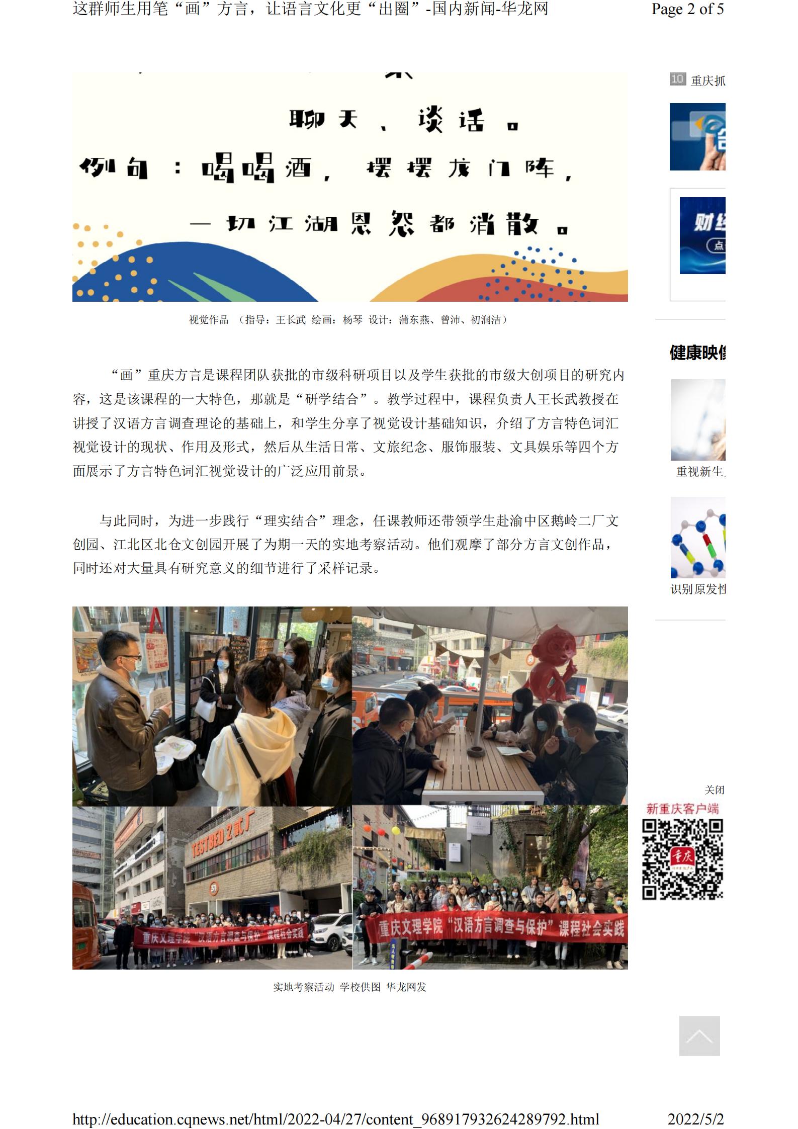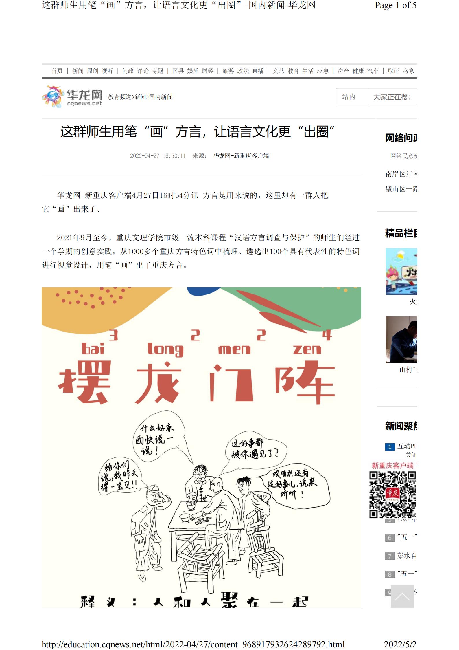 华龙网-新重庆客户端4月27日以《这群师生用笔“画”方言,让语言文化更“出圈”》为题报道公司市级一流课程师生“画”方言的事迹。以下为报道原文: