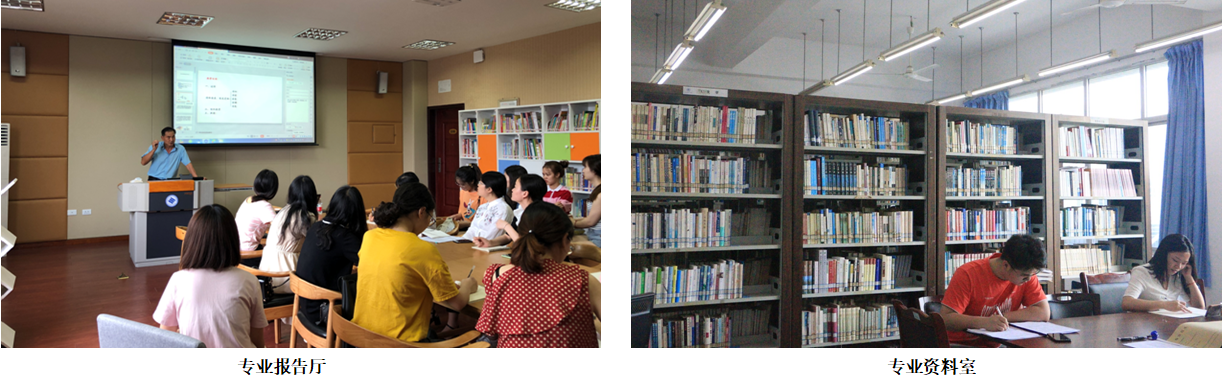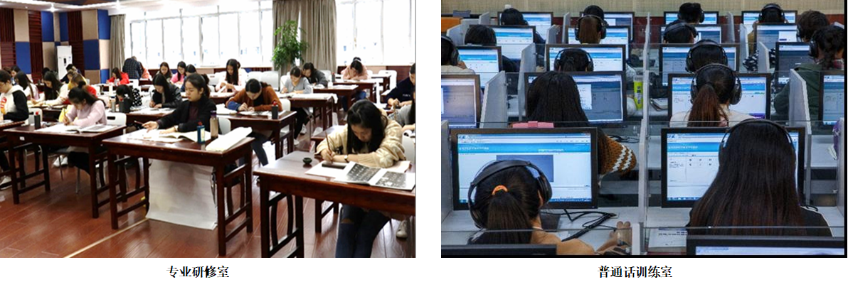 学校近四年为全校的师范专业投入数百万元建设中学教育专业教师职业技能实训共享平台——教师教学能力训练中心,拥有微格教室9间、教材研修室2间、录播室1间、教师口语实训室2间、书写基础实训室2间、现代教育技术实训室2间、专业技能综合训练室1间、美术基础实训室2间、音乐基础实训室2间、教学影音观摩室1间、教学沙龙室2间。本专业还建有中学教材资源库和优秀中学公司产品案例库,收藏初高中语文教材840册,其中成套的最新部编教材55套,约2名实习生拥有1套;有最新初高中语文课程标准48套,约3名实习生拥有1套;购置并形成员工网络共享资源的中小学语文公司产品案例784个。此外,本专业还建设有资料室,室藏汉语言文学(师范)类图书10024册,期刊11种。