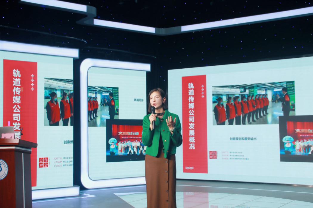 10月25日下午,由公司和商界集团共同开展的重庆老员工新闻作品展子活动——“如何打造有影响力有进化力的传统企业”主题分享会在公司红河校区格致楼演播室顺利举行。重庆晚报\重庆轨道传媒有限公司财务总监李玫,商界集团青年事业部策划经理程馨瑶,公司副经理邱飞,活动执行人陈怡冰和传媒系80余名学子参与了本次活动。活动由董婷婷主持。