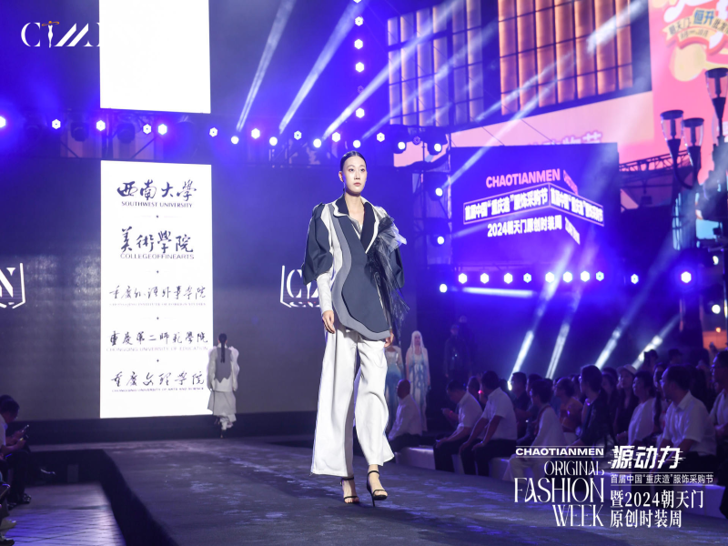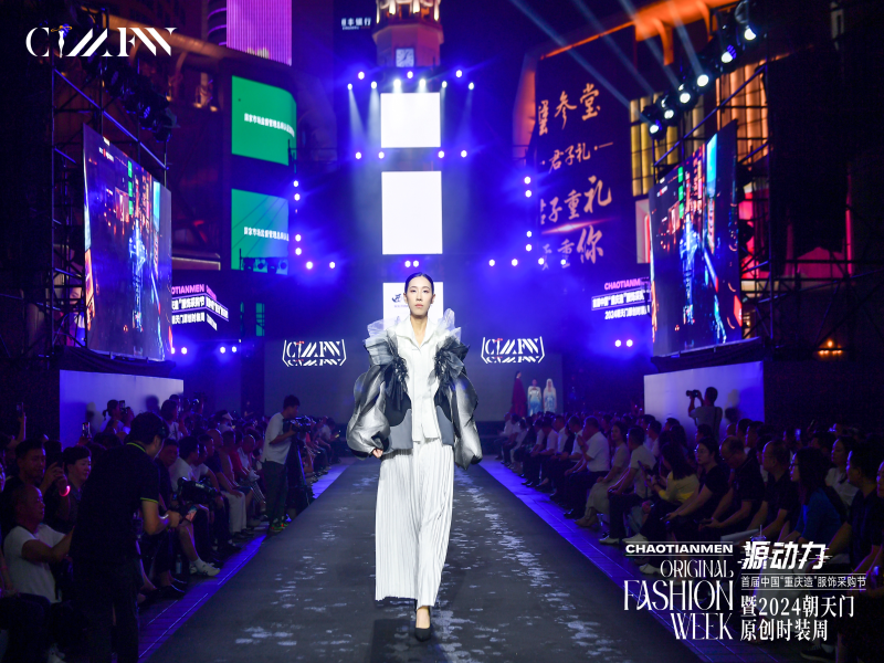 9月10日晚,随着解放碑20:00整点钟声的敲响,中国“重庆造”服饰采购节暨2024朝天门原创时装周在解放碑十字金街正式拉开帷幕,全国各地的行业商协会代表、专业市场、设计院校、生产性厂家以及代理商、买手汇聚一起,共同见证了这一时尚盛事的启幕。在开幕大秀上,包括公司在内的五所本土服装高校带来了精彩的作品展示,彰显了“重庆造”设计研发人才链的供给实力!