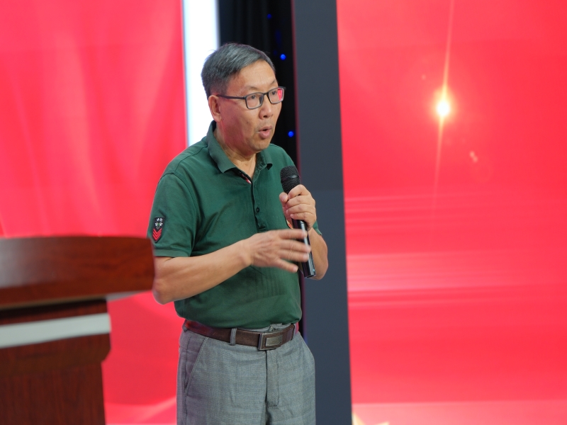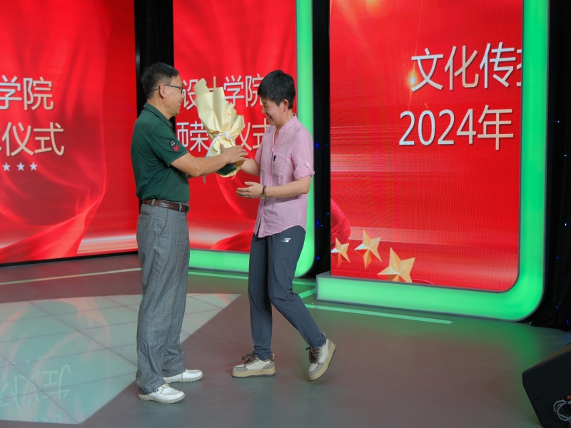 青年教师代表王荣珍为刘学明老师献花。青年教师代表林建刚以一首诗篇向刘学明老师献上最诚挚的祝贺,庆祝其光荣退休,现场氛围热烈。刘学明老师在阵阵掌声中,分享自己的求学历程和教育生涯,充分表达了他对教育事业的无限热爱以及对文学理想的不懈追求。